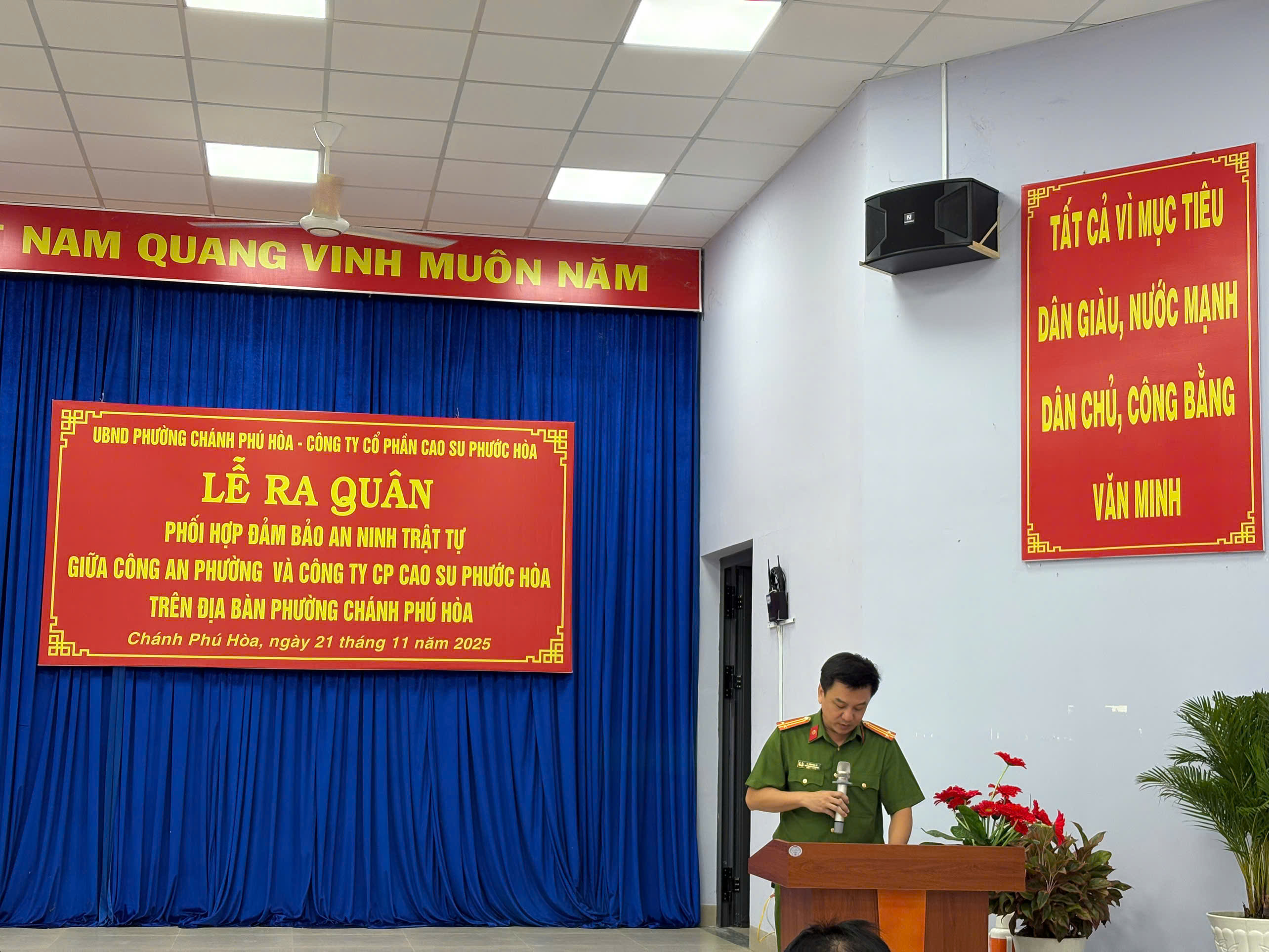 Công an phường Chánh Phú Hòa và Công ty CPCS Phước Hòa triển khai kế hoạch - Ra quân phối hợp đảm bảo ANTT